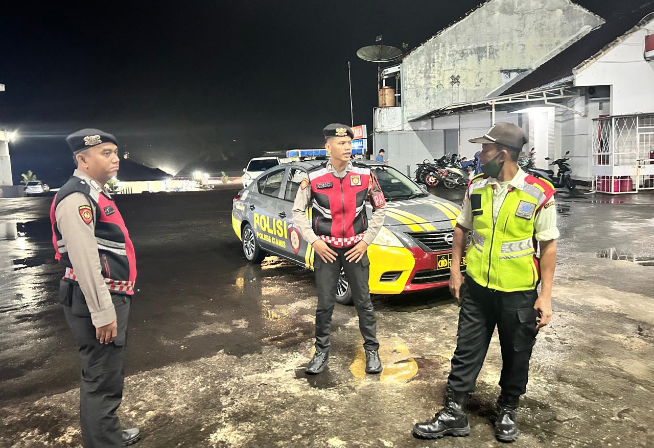 CIAMIS ~ Pasukan Patroli Roda 4 Satuan Samapta Polres Ciamis Polda Jabar melakukan Patroli Dialogis ke area publik dan objek vital dalam rangka cipta kondisi antisipasi gangguan kamtibmas. Patroli kali ini menyambangi kawasan SPBU Nagrak Ciamis, Kabupaten Ciamis, Jawa Barat, Selasa (27/1/2026), tengah malam.