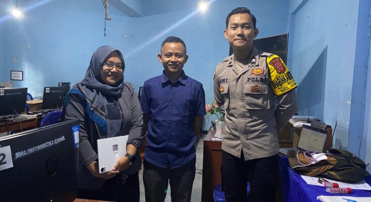 Anggota yang hadir memberikan edukasi ke para siswa yakni Briptu Muhamad Agni Ihtada. Kegiatan ini dilaksanakan SMA Informatika Ciamis, Kelurahan Maleber, Kecamatan Ciamis, Kabupaten Ciamis, Jawa Barat, Kamis (13/11/2025).