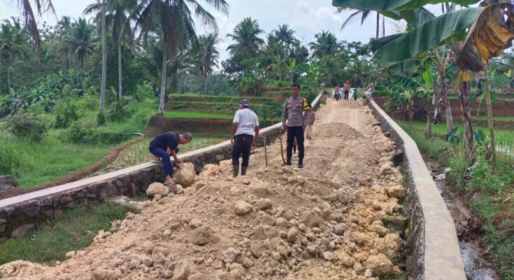 CIAMIS ~ Personel Polsek Cisaga Polres Ciamis Polda Jabar melaksanakan kegiatan humanis dengan hadir monitoring kegiatan percepatan pembangunan berupa pemadatan urugan di Jalan Blok Lebak Nangka Dusun Cibuluh RT.12 RW.06, Desa Tanjungjaya, Kecamatan Cisaga, Kabupaten Ciamis, Jawa Barat, Sabtu (13/9/2025).