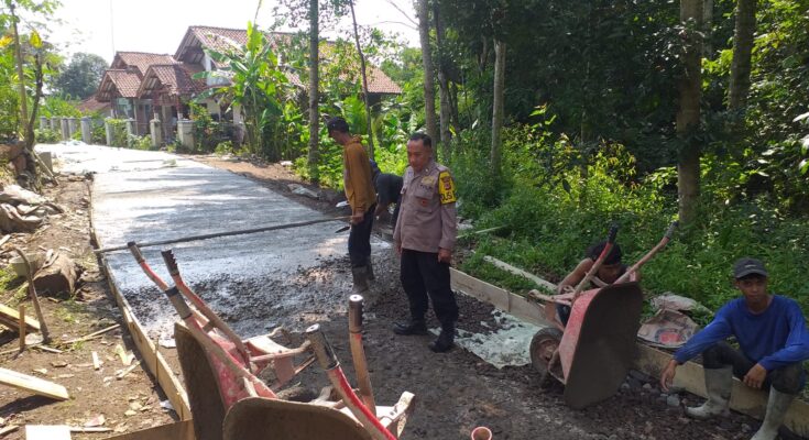 CIAMIS ~ Personel Polsek Lakbok Polres Ciamis Polda Jabar melaksanakan kegiatan humanis dengan hadir memonitoring pembangunan jalan rabat beton di Dusun Sukaratu Rt. 006 Rw. 002, Desa Padaringan, Kecamatan Purwadadi, Kabupaten Ciamis, Jawa Barat, Minggu (11/5/2025).