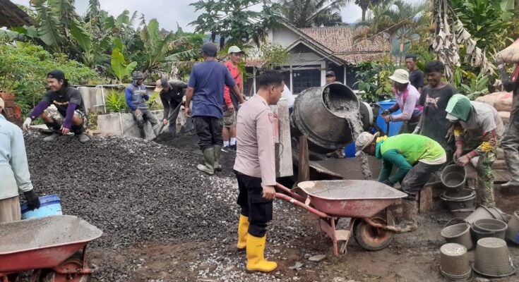 CIAMIS ~ Personel Polsek Panjalu Polres Ciamis Polda Jabar melaksanakan humanis dengan mendatangi dan ikut membantu kegiatan masyarakat berupa pembangunan jalan rabat beton di Desa Cibeureum. Pembangunan jalan ini berada di Dusun Nusasireum, Desa Cibeureum, Kecamatan Sukamantri, Kabupaten Ciamis, Jawa Barat, Minggu (23/11/2025).
