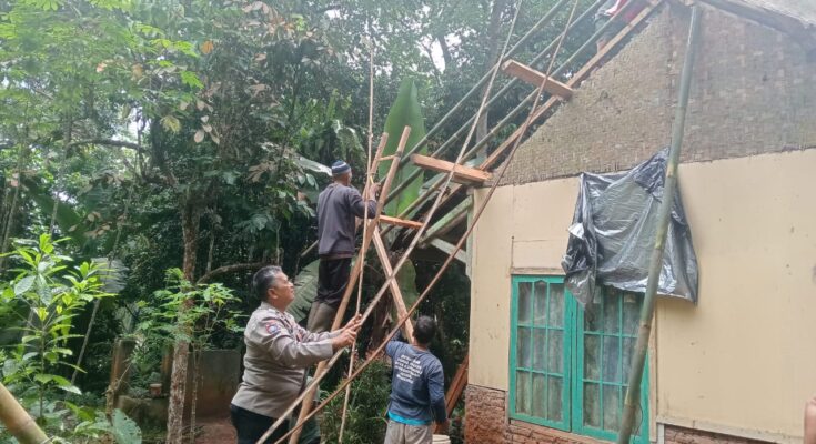 CIAMIS ~ Personel Polsek Sukadana Polres Ciamis Polda Jabar secara humanis datang ke masyarakat membantu dan bergotong royong bersama memperbaiki atap rumah warga. Gotong royong itu berlangsung di kediaman Sardi Herdiana warga RT 37/ 10 Dusun Salegok Desa Ciparigi, Kabupaten Ciamis, Jawa Barat, Minggu (16/11/2025).