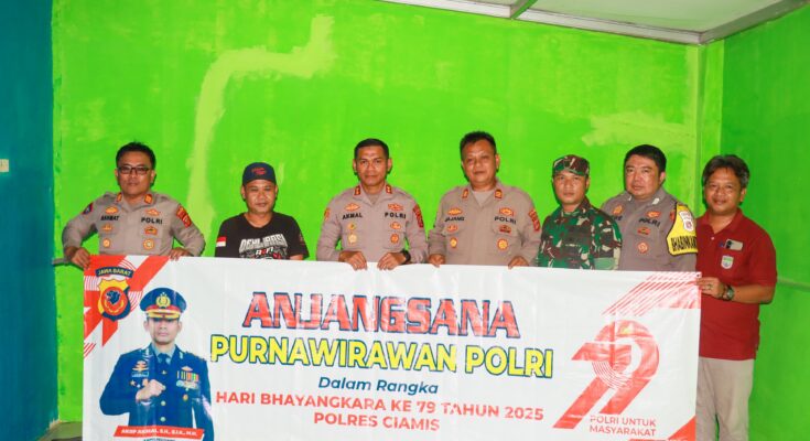 Ciamis – Dalam rangka menyambut Hari Bhayangkara ke-79, Kapolres Ciamis AKBP Akmal, S.H., S.I.K., M.H. bersama jajaran Pejabat Utama (PJU) melaksanakan kegiatan anjangsana sebagai bentuk nyata kepedulian sosial Polri terhadap masyarakat dan purnawirawan. Kegiatan ini dilaksanakan pada Jumat (20/6/2025), mulai pukul 09.00 WIB hingga selesai, di wilayah Kecamatan Cijeungjing, Kabupaten Ciamis.