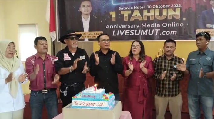 Perayaan Hari Ulang Tahun (HUT) ke-1 media LIVESUMUT.com berlangsung meriah dan penuh kehangatan di Toba Hall, Batavia Hotel, Kota Pematangsiantar, Kamis (30/10/2025).