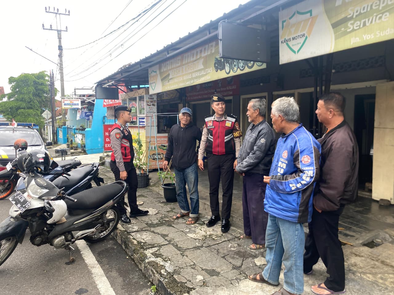 CIAMIS ~ Personel Satuan Samapta Polres Ciamis Polda Jawa Barat melaksanakan Patroli Dialogis dalam rangka menjaga Harkamtibmas tetap kondusif. Patroli ini dilaksanakan secara mobile di kawasan pusat kota Kabupaten Ciamis. Salah satunya dilaksanakan ke Pangkalan Ojeg Alun Alun Ciamis, Ciamis, Kabupaten Ciamis, Jawa Barat, Jumat (12/12/2025).