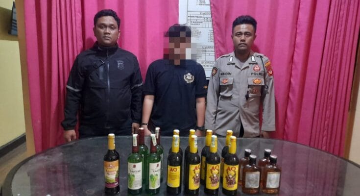 Adapun jenis miras yang diamankan, antara lain, 4 Botol Whiskey, 4 Botol Kawa-Kawa, 8 Botol AO Besar, 1 Botol Anggur Merah.