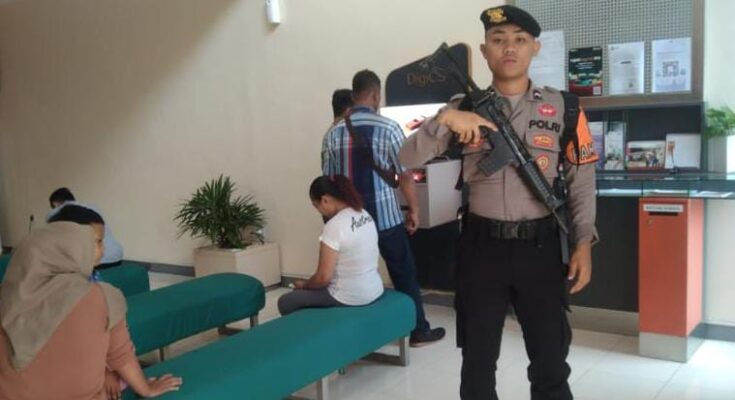 Anggota yang bertugas yakni Bripda Anggi, dimana turut melakukan koordinasi dan komunikasi bersama petugas keamanan internal maupun pegawai perbankan. Ini juga bagian dari pada sinergitas Polri dengan elemen masyarakat terutama Mitra Kepolisian Satuan Pengamanan di salah satu objek vital.