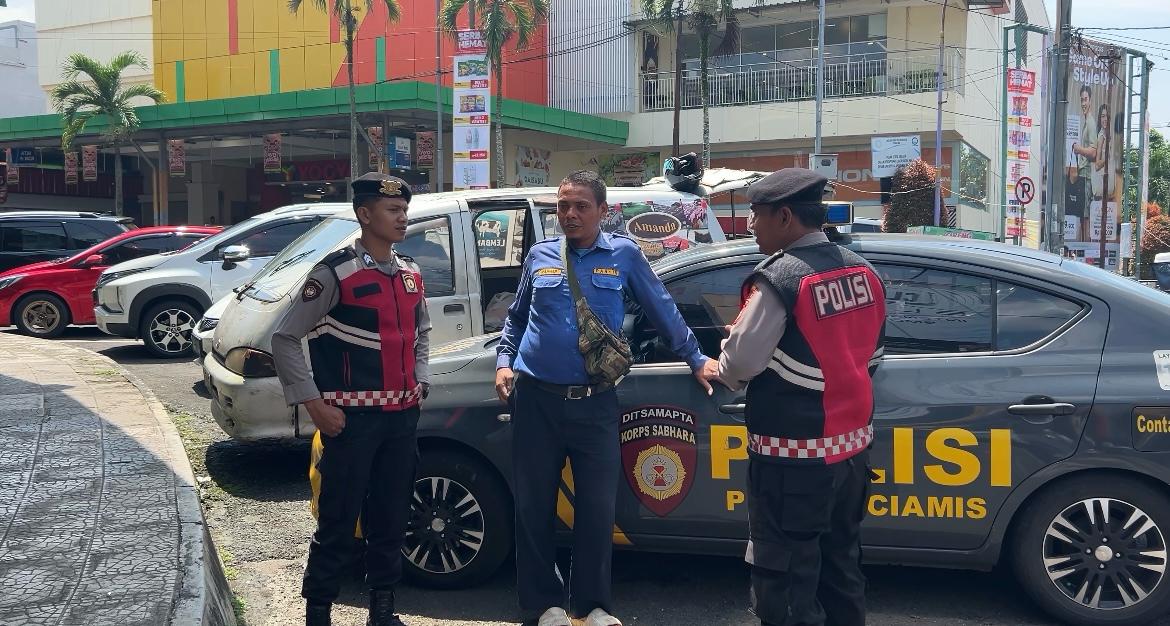 Sebanyak tiga personel Unit Patroli Satuan Samapta Polres Ciamis Polda Jabar menyampaikan himbauan kamtibmas di area publik Pusat Perbelanjaan di Kabupaten Ciamis. Mereka diantaranya Bripka Ayi Duddy, Briptu Diki Adhi dan Bripda Ega M. Thoriq. Ketiganya bertugas dibawah arahan dan pimpinan Iptu Zezen Zaenal Mutaqin, SH., M.M., selaku Kasat Samapta Polres Ciamis Polda Jabar.