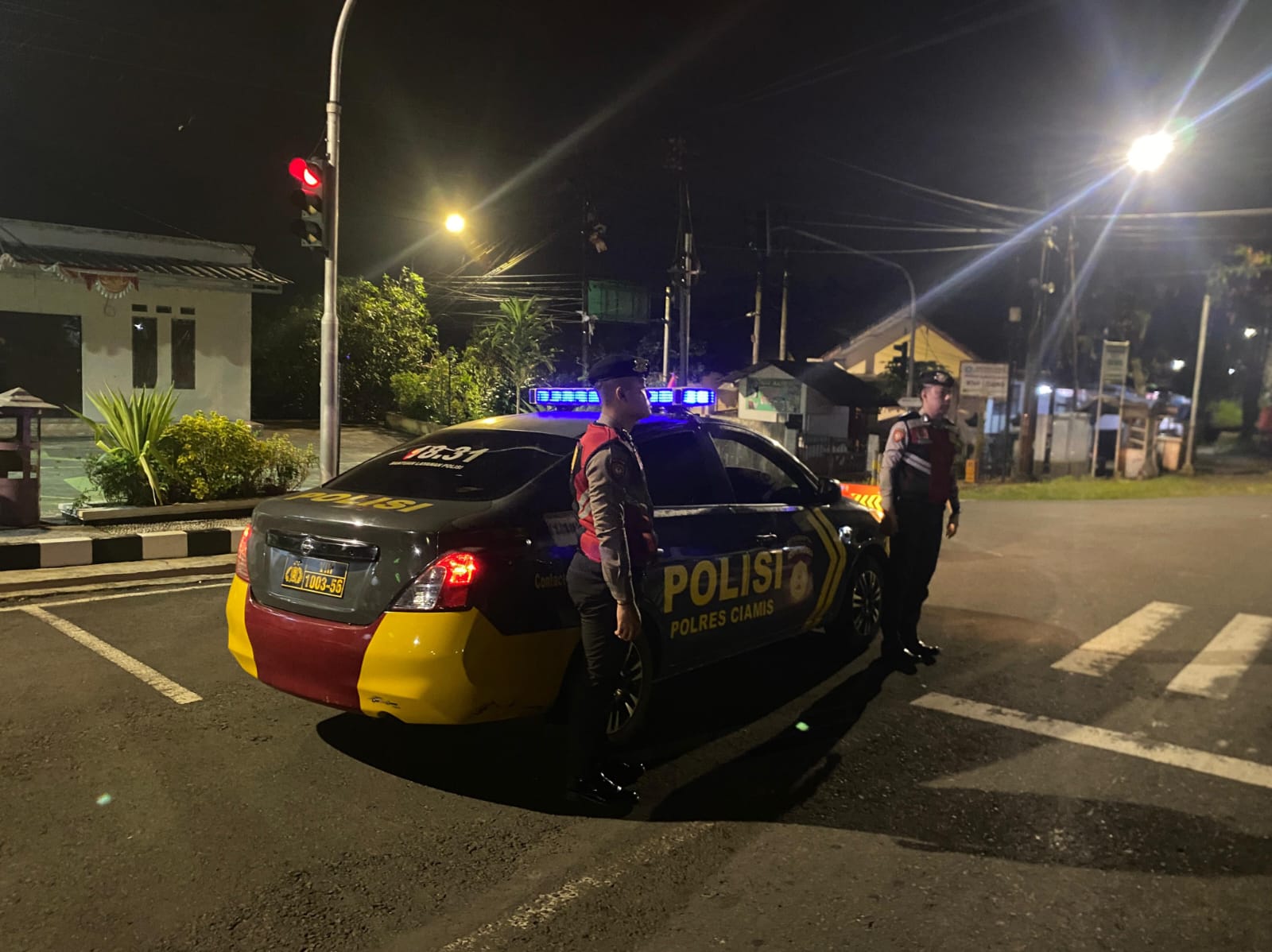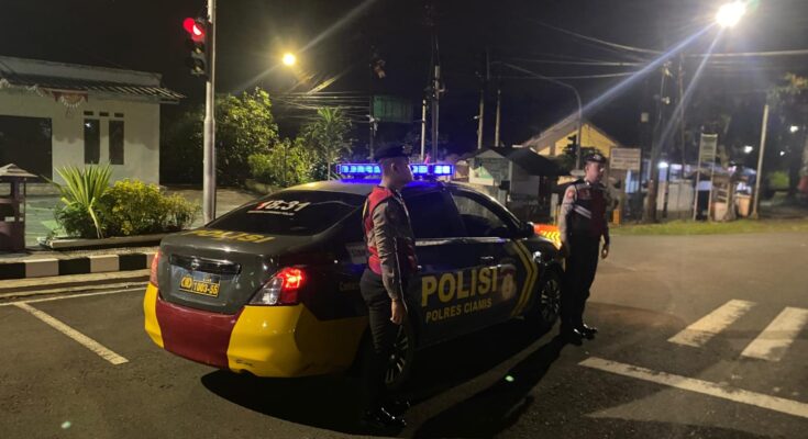 Terlihat sejumlah personel Unit Patroli Satuan Samapta Polres Ciamis Polda Jabar menggunakan kendaraan roda 4 dinas Polri memantau situasi saat malam hari. Ini dilakukan Polri untuk memberikan rasa nyaman masyarakat beraktifitas selama momentum Libur Panjang Anak Sekolah, Hari Natal dan Tahun Baru 2026.