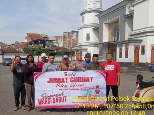 Sebagai bagian dari program Jumat Curhat yang rutin dilaksanakan oleh Polres Garut, kegiatan kali ini digelar di Masjid Agung Kaum Samarang, Kecamatan Samarang, Kabupaten Garut.
