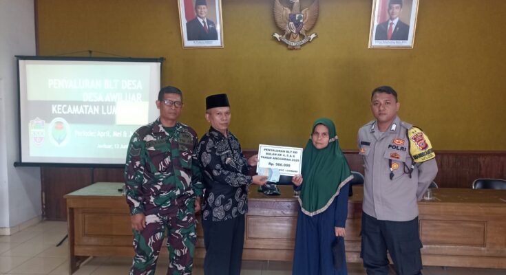 Ciamis – Sebanyak 13 Keluarga Penerima Manfaat (KPM) di Desa Awiluar, Kecamatan Lumbung, Kabupaten Ciamis, hari ini, Kamis 12 Juni 2025, merasakan kebahagiaan. Bertempat di Aula Balai Desa Awiluar, telah dilaksanakan penyaluran Bantuan Langsung Tunai (BLT) yang bersumber dari alokasi Dana Desa tahun 2025.