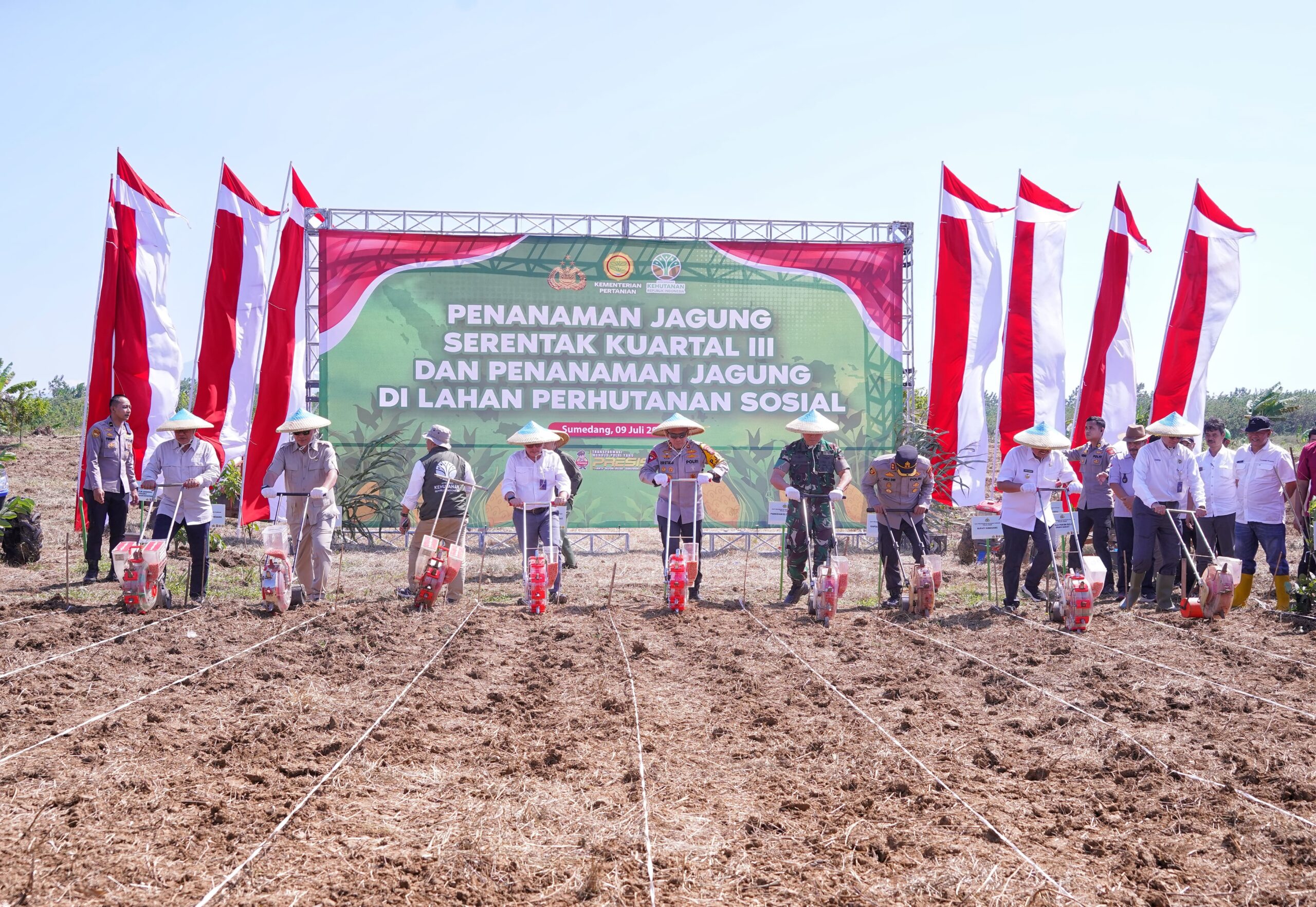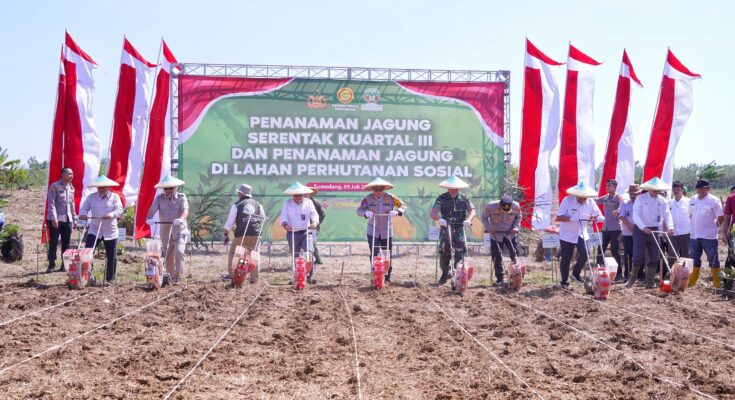 Kapolda Jawa Barat Irjen Pol. Rudi Setiawan memimpin kegiatan penanaman jagung serentak kuartal tiga, yang dilaksanakan di Petak 72, Blok Bandrek, Desa Keboncau, Kecamatan Ujungjaya, Kabupaten Sumedang, Rabu (9/7/2025).