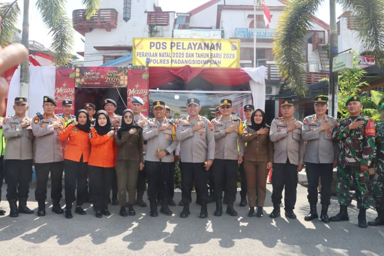 Padangsidimpuan – Kapolda Sumatera Utara Irjen Pol Whisnu Hermawan Februanto, S.I.K., M.H., melaksanakan kunjungan kerja ke wilayah Kota Padangsidimpuan dalam rangka pengecekan Pos Pengamanan (Pospam) dan Pos Pelayanan (Posyan) Operasi Lilin Toba 2025, Senin (22/12/2025).