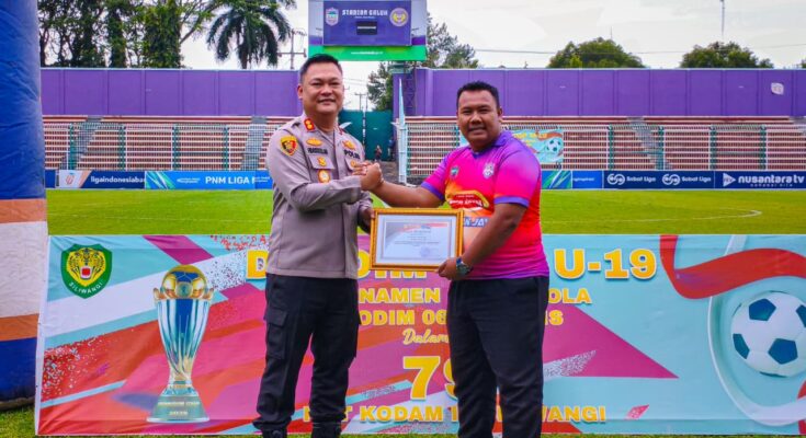 Ciamis – Kapolres Ciamis AKBP H. Hidayatullah, S.H., M.H. menghadiri pertandingan final Turnamen Sepak Bola Piala Bergilir Dandim Cup II Tahun 2025 Kategori U-19 yang digelar di Stadion Galuh Kabupaten Ciamis, Jum’at (15/8/2025) sore. Kegiatan ini diselenggarakan Kodim 0613/Ciamis dalam rangka memperingati HUT Kodam III/Siliwangi ke-79 dan HUT Kemerdekaan RI ke-80.