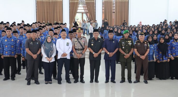 CIAMIS – Kapolres Ciamis AKBP AKMAL, S.H., S.I.K., M.M. turut menghadiri kegiatan Pelantikan dan Pengambilan Sumpah Jabatan Pegawai Pemerintah dengan Perjanjian Kerja (PPPK) serta Penyerahan SK Pengangkatan Calon Pegawai Negeri Sipil (CPNS) formasi tahun 2024 di lingkungan Pemerintah Kabupaten Ciamis yang digelar di Gedung Islamic Center, Senin (26/5/2025).