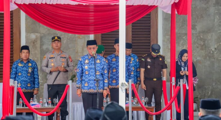 Ciamis – Pemerintah Kabupaten Ciamis melaksanakan Upacara Bendera dalam rangka peringatan Hari Kesadaran Nasional, Hari Kesehatan Nasional ke-61, Hari Guru Nasional, HUT Persatuan Guru Republik Indonesia ke-80, HUT Korps Pegawai Republik Indonesia ke-54, Hari Anti Korupsi Sedunia, serta Hari AIDS Sedunia tingkat Kabupaten Ciamis. Upacara diselenggarakan di Halaman Pendopo Kabupaten Ciamis dengan dihadiri ratusan peserta dan unsur pimpinan daerah. Kegiatan tersebut berlangsung pada Senin pagi (01/12/2025).