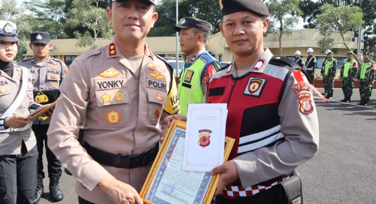 Cianjur – Jejak-kriminal.com-Kapolres Cianjur, AKBP Rohman Yonky Dilatha, S.I.K., M.Si., M.H., memimpin Apel Pengamanan Malam Takbir Ops Ketupat Lodaya 2025 serta Korps Raport Kenaikan Pangkat Pengabdian dan Pemberian Penghargaan Personel Berprestasi Polres Cianjur. Kegiatan ini berlangsung di Lapangan Apel Mapolres Cianjur pada Minggu (30/3/2025).