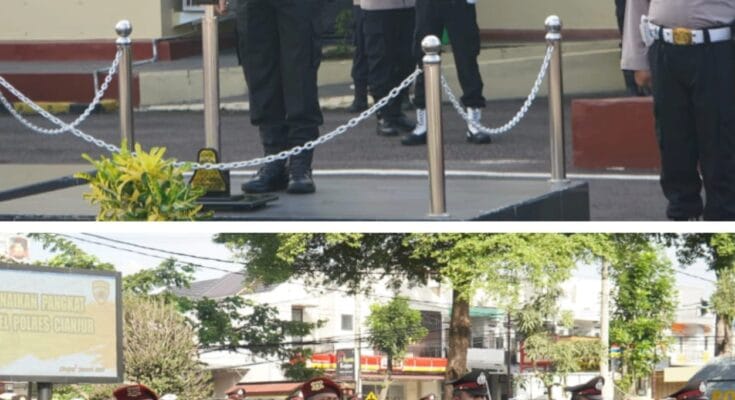 Cianjur – Polres Cianjur menggelar Upacara Korps Raport Kenaikan Pangkat Perwira dan Bintara yang dilaksanakan di Lapangan Upacara Mako Polres Cianjur dan dipimpin oleh Kapolres Cianjur AKBP Rohman Yonky Dilatha, S.I.K., M.Si. M.H., Kamis (02/01/2025) pagi.