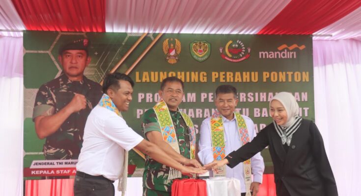 KASAD bersama unsur Forkopimda juga menyalurkan bantuan sosial sembako tali asih secara simbolis kepada masyarakat sekitar.