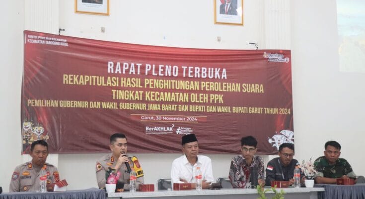 Garut.Jejak-kriminal.com-Kapolres Garut AKBP Mochamad Fajar Gemilang, S.I.K., M.H., M.I.K., bersama PJU Polres Garut, melakukan monitoring dan pengamanan langsung terhadap pelaksanaan rapat pleno Panitia Pemilihan Kecamatan (PPK) di wilayah hukum Polres Garut. Sabtu (30/11/2024)