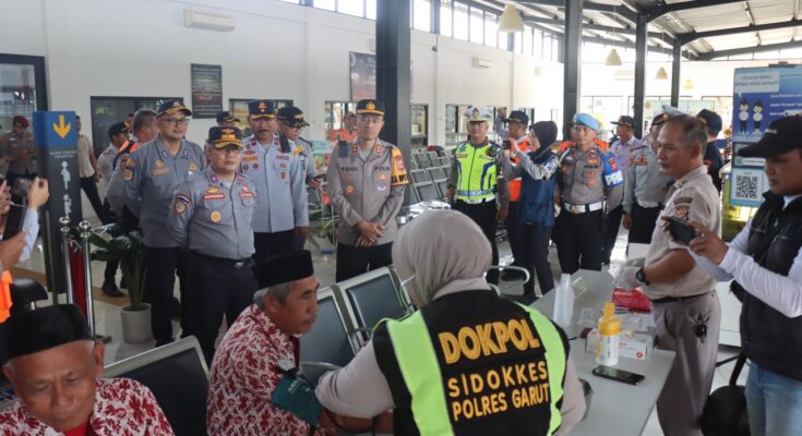 Garut | Kapolres Garut AKBP Yugi Bayu Hendarto, S.I.K., M.A.P., memimpin langsung kegiatan Ramp Check kendaraan angkutan umum yang dilaksanakan di Terminal Guntur, Kabupaten Garut, pada Selasa (23/12/2025).