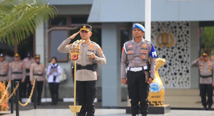 Bertindak selaku Inspektur Upacara, Kapolres Garut, AKBP Mochamad Fajar Gemilang, S.I.K., M.H., M.I.K., yang didampingi oleh Pejabat Utama Polres Garut.
