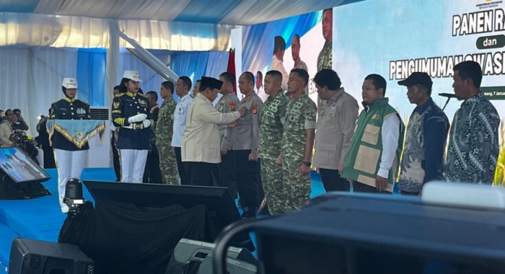 Penghargaan ini diserahkan dalam rangkaian kegiatan Panen Raya dan Pengumuman Swasembada Pangan yang dilaksanakan di Kecamatan Cilebar, Kabupaten Karawang. Rabu (7/1/2026).