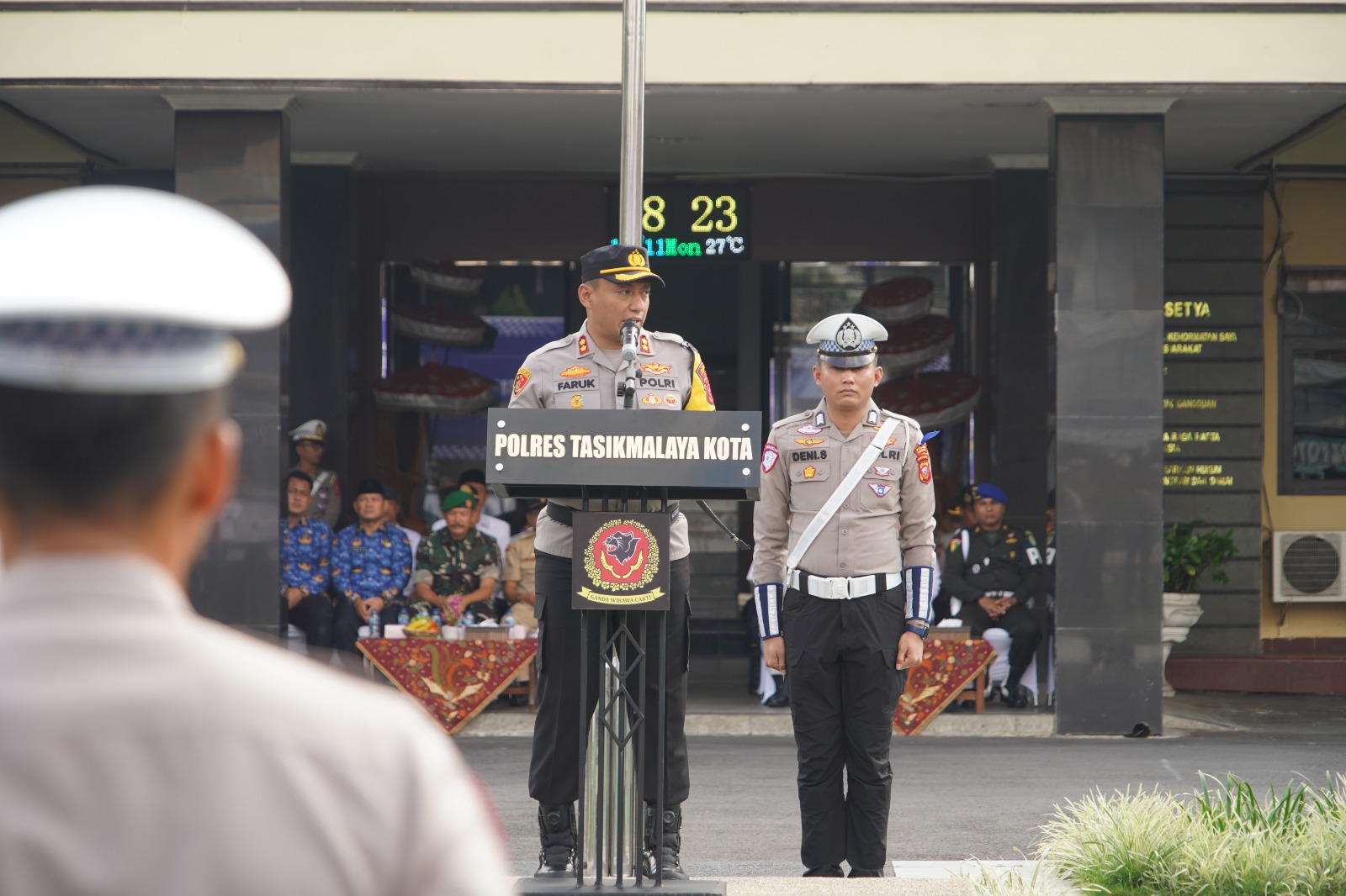 Polres Tasikmalaya Kota – Kapolres Tasikmalaya Kota AKBP Moh. Faruk Rozi, S.H., S.I.K., M.Si. memimpin Apel Gelar Pasukan Operasi Zebra Lodaya 2025 yang dilaksanakan pada Senin pagi, 17 November 2025, di halaman Mapolres Tasikmalaya Kota.