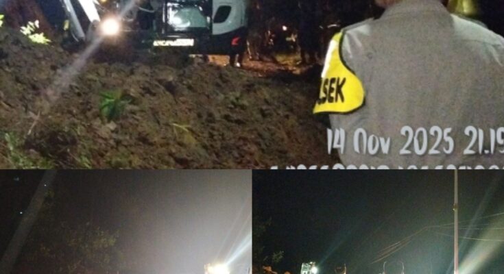 Jejak-kriminal.com-14 November 2025 Kapolsek Caringin Ipda Indra Koncara bersama anggota melaksanakan pengecekan lokasi bencana alam longsor yang terjadi di Jalan Raya Bungbulang–Caringin, tepatnya di Kampung Datar Awi RT 04 RW 07, Desa Sukarame, Kecamatan Caringin, Kabupaten Garut.