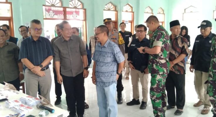 CIAMIS ~ Kapolsek Pamarican Polres Ciamis Polda Jabar AKP Jajang Sahidin bersama sejumlah Unsur Muspika Pamarican menyambut kedatangan kunjungan Forkopimda Kabupaten Ciamis di TPS Kecamatan Pamarican. Kunjungan itu salah satunya dilaksanakan di TPS 01 RT.03 RW.01 Dusun Pamarican, Desa Pamarican, Kecamatan Pamarican, Kabupaten Ciamis, Jawa Barat, Rabu (27/11/2024).