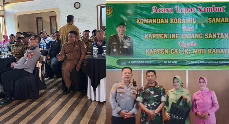 Garut Selasa 14 Oktober 2025 Kapolsek Samarang bersama Ibu Ketua Bhayangkari Ranting Samarang menghadiri acara pisah sambut Danramil 1112 Samarang dari pejabat lama Kapten Inf Enjang Santana kepada pejabat baru Kapten CAJ (K) Muji Rahayu. Acara digelar di Aula Saung Ciburial, Desa Sukalaksana, Kecamatan Samarang, Kabupaten Garut.
