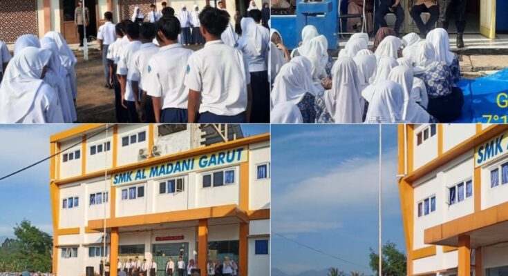 Jejak-kriminal.com-Garut 6 Oktober 2025 Kapolsek Samarang bersama Kanit Binmas dan Bhabinkamtibmas Polsek Samarang, Polres Garut, menghadiri kegiatan upacara bendera di SMK Almadani, Desa Samarang, Kecamatan Samarang, Kabupaten Garut.