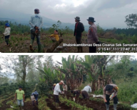 Garut Selasa 14 Oktober 2025 Kapolsek Samarang bersama Bhabinkamtibmas Desa Cisarua melaksanakan kegiatan monitoring perkembangan lahan non-LBS yang digunakan untuk penanaman jagung di wilayah Kampung Pangkalan, Desa Cisarua, Kecamatan Samarang, Kabupaten Garut.