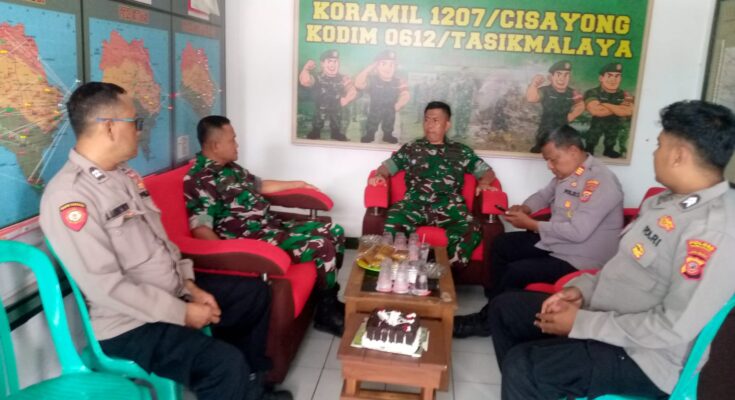 Kota Tasik– Dalam rangka memperingati Hari Ulang Tahun (HUT) ke-80 Tentara Nasional Indonesia (TNI), Kapolsek Sukaratu Polres Tasikmalaya Kota AKP Dede Tarman bersama anggota melaksanakan kunjungan silaturahmi ke Koramil Cisayong, Senin (6/10/2025).