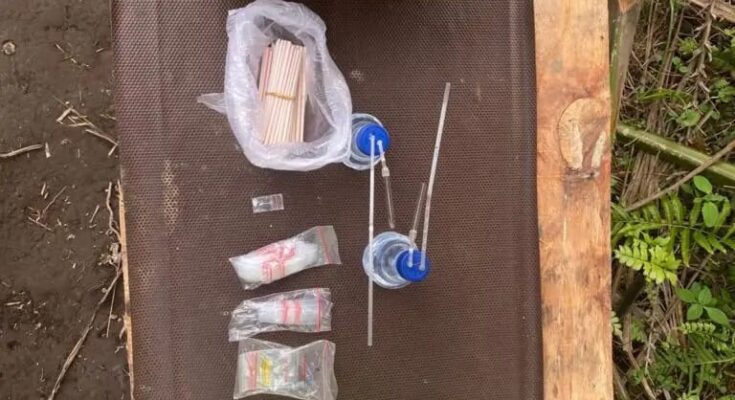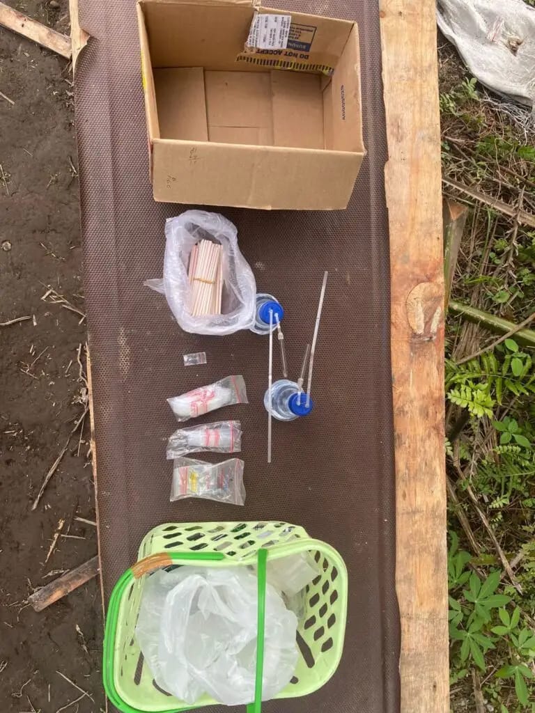 Pada saat dilakukan penggerebekan tidak ditemukan adanya penghuni, barak dalam keadaan kosong, namun ditemukan barang bukti berupa :