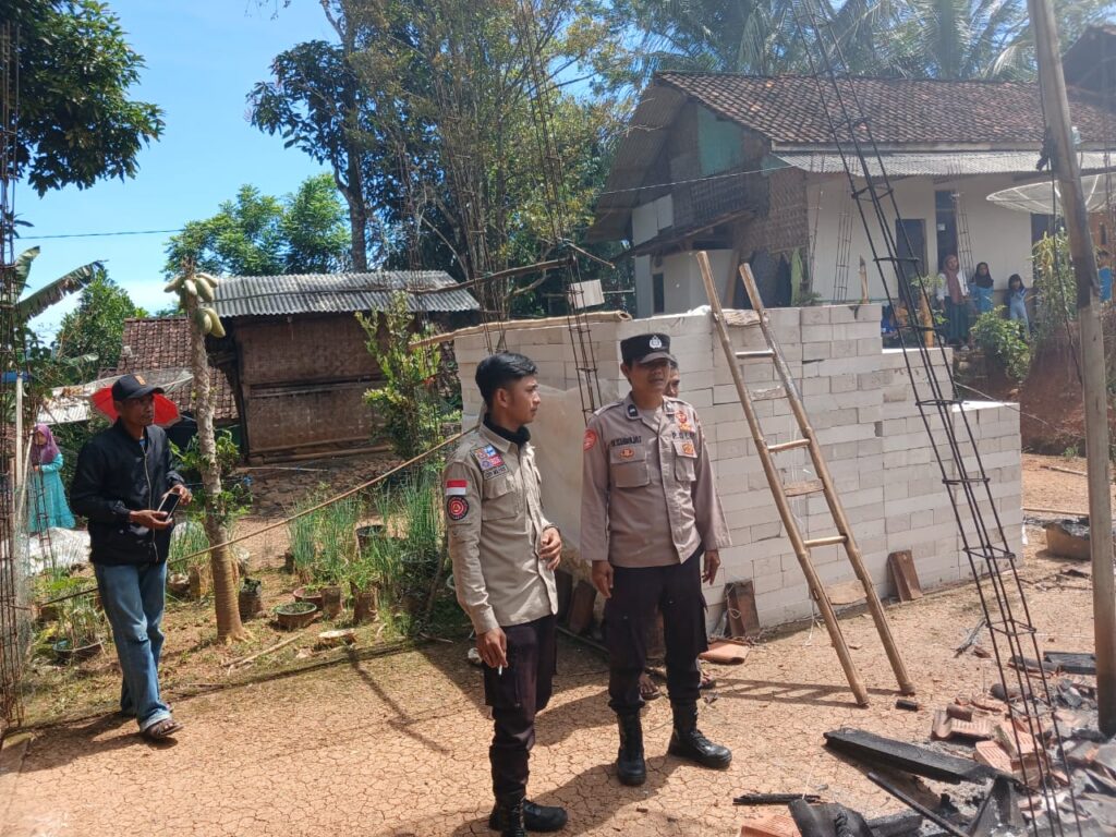 Petugas yang melaksanakan cek TKP dengan didukung unsur terkait yang turut hadir di lokasi, di antaranya Babinsa Desa Purbayani, Satpol PP Kecamatan Caringin, Damkar serta para relawan.