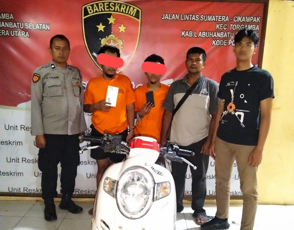 Jejak-kriminal.com-Torgamba, Labuhan batu Selatan dua pelaku penjambretan handphone yang menyasar seorang mahasiswa di Jalan Lintas Cagar Alam, Desa Beringin Jaya, Kecamatan Torgamba, Kabupaten Labuhan batu Selatan, berhasil diringkus Unit Reskrim Polsek Torgamba dalam waktu kurang dari 12 jam setelah kejadian, Senin (5/1/2026).