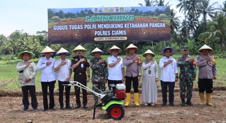 CIAMIS ~ Polres Ciamis Polda Jabar melaunching Gugus Tugas Polri mendukung ketahanan pangan yang menjadi salah satu Asta Cita Presiden Republik Indonesia H. Prabowo Subianto untuk menjadikan Indonesia sebagai negara Swasembada Pangan. Launching dilakukan di lahan pertanian jagung di Dusun Handapherang, Desa Handapherang, Kecamatan Cijeungjing, Kabupaten Ciamis, Jawa Barat, Rabu (20/11/2024).