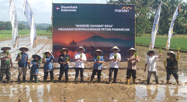 Ciamis – Petani di Dusun Cilisung, Desa Bantarsari, Kecamatan Pamarican, Kabupaten Ciamis, kini semakin optimis menyongsong masa panen. Hal ini menyusul dilaksanakannya sosialisasi program Mandiri Sahabat Desa “Program Kewirausahaan Petani Pamarican” yang digagas oleh Bank Mandiri bekerja sama dengan PT Prima Kelola IPB. Acara yang berlangsung di Demplot Padi Program Mandiri Sahabat Desa ini dihadiri berbagai pihak penting, menunjukkan komitmen bersama dalam memajukan sektor pertanian lokal.