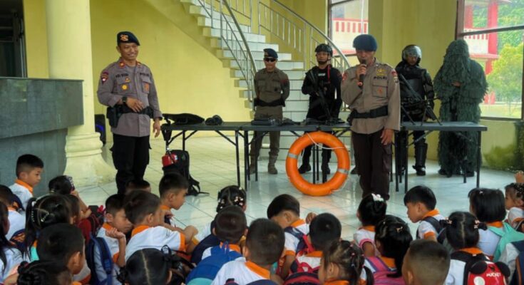 Satuan Brimob Polda Sumatera Utara terus membangun kedekatan dengan masyarakat melalui pendekatan edukatif sejak usia dini. Kali ini, personel Kompi 4 Batalyon C melaksanakan kegiatan pengenalan Brimob kepada anak-anak TK Swasta Ruder yang berlangsung di Mako Kompi 4 Batalyon C, wilayah Gunungsitoli, Selasa (3/3/2026).