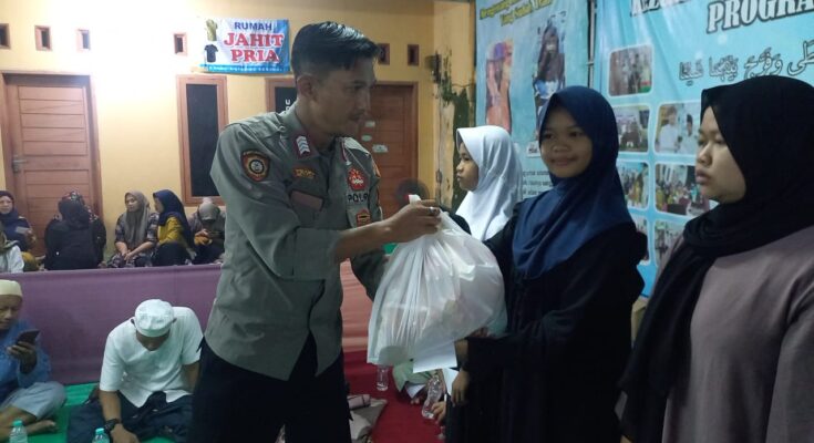 Personel Dalmas Satuan Samapta Polres Tasikmalaya Kota hadir dan berbaur bersama masyarakat serta anggota Komunitas Squad Hijrah Parkir Mannaku, mengikuti rangkaian pengajian sekaligus berbagi kepedulian kepada ratusan anak yatim piatu.