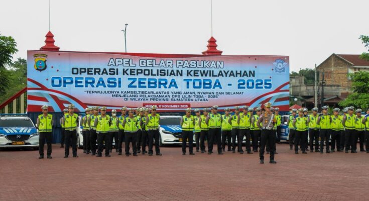 MEDAN – Polda Sumatera Utara menggelar Apel Gelar Pasukan Operasi Kewilayahan “Zebra Toba 2025” di Lapangan KS Tubun Mapolda Sumut, Senin (17/11/2025). Apel dipimpin oleh Wakapolda Sumut Brigjen Pol. Rony Samtana, S.I.K., M.T.C.P., yang hadir mewakili Kapolda Sumut Irjen Pol. Whisnu Hermawan Februanto, S.I.K., M.H.