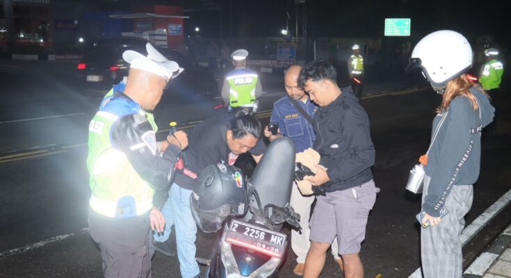 Seperti kegiatan pemeriksaan kelengkapan berkendara di jalan raya yang dilakukan oleh personel gabungan Polri dan Pemerintah di Jalan Imbanagara depan Pos Lantas Polres Ciamis, Imbanagara, Ciamis, Kabupaten Ciamis, Jawa Barat, Kamis, 20 Februari 2025, malam.