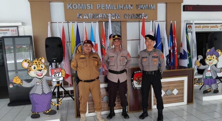 Kapolres Ciamis Polda Jabar AKBP Akmal SH., S.I.K., M.H., Kabag Ops Polres Ciamis Polda Jabar Kompol Nia Kurnia SH., M.H., mengatakan, Polres Ciamis melaksanakan pengamanan untuk bersiaga 24 jam nonstop di penyelenggara Pilkada Serentak 2024. Ini guna mendukung petugas keamanan di kantor penyelenggara dalam rangka antisipasi gangguan kamtibmas. Salah satunya di Kantor KPU Kabupaten Ciamis.