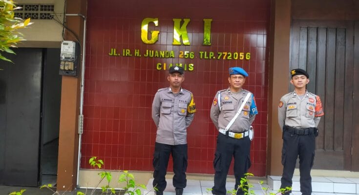 Salah satunya pengamanan yang dilakukan jajaran Polres Ciamis Polda Jabar saat pelaksanaan Kebaktian Minggu Pagi di sekitar Gereja Kristen Indonesia Ciamis. Para personel bersiaga di sekitar Gereja Kristen Indonesia yang berada di Jl. Ir. H. Juanda, Ciamis, Kabupaten Ciamis, Jawa Barat, Minggu (13/12/2024).