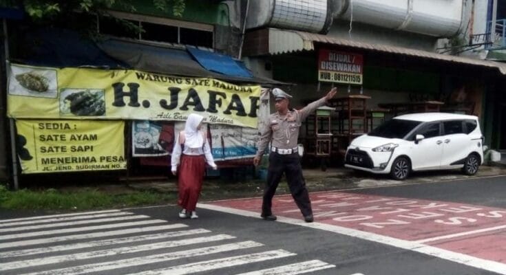 CIAMIS ~ Polsek Ciamis Polres Ciamis Polda Jabar melaksanakan kegiatan pelayanan masyarakat di pagi hari berupa pengaturan arus lalu lintas dengan sasaran anak sekolah. Kegiatan ini dilaksanakan Jalan Raya Padat Aktifitas Warga di Depan SDN 3 Ciamis, Ciamis, Kabupaten Ciamis, Jawa Barat, Senin (20/1/2025).