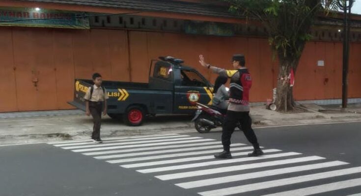 CIAMIS ~ Polsek Cijeungjing Polres Ciamis Polda Jabar melaksanakan kegiatan pelayanan masyarakat di pagi hari berupa pengaturan arus lalu lintas dengan sasaran anak sekolah. Kegiatan ini dilaksanakan Depan SDN 1 Bojongmengger di Jalan Raya Ciami-Banjar, Desa Bojongmengger, Kecamatan Cijeungjing, Kabupaten Ciamis, Jawa Barat, Jumat (16/5/2025).