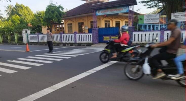 CIAMIS ~ Polsek Cijeungjing Polres Ciamis Polda Jabar melaksanakan kegiatan pelayanan masyarakat di pagi hari berupa pengaturan arus lalu lintas dengan sasaran anak sekolah. Kegiatan ini dilaksanakan Depan SDN 1 Bojongmengger di Jalan Raya Ciami-Banjar, Desa Bojongmengger, Kecamatan Cijeungjing, Kabupaten Ciamis, Jawa Barat, Rabu (23/7/2025).