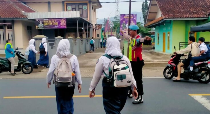 CIAMIS ~ Polsek Cipaku Polres Ciamis Polda Jabar melaksanakan kegiatan pelayanan masyarakat berupa pengaturan arus lalu lintas dengan sasaran anak sekolah dan orang tua. Kegiatan ini dilaksanakan disejumlah titik keramaian wilayah Kecamatan Cipaku, Kabupaten Ciamis, Jawa Barat, Selasa (17/6/2025).