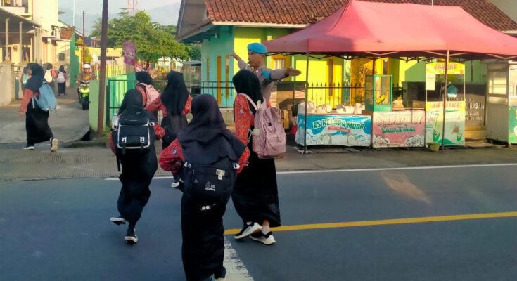 Mereka hadir memberikan pelayanan kepada masyarakat. Mulai dari membantu masyarakat menyebrang hingga pengaturan lalu lintas di pagi hari.